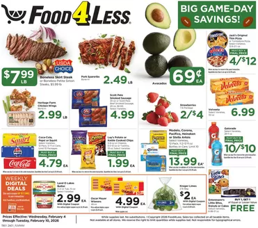 Food 4 Less is a chain of grocery stores thats best known for their no-frills approach to grocery shopping. The stores are set up like a warehouse, and shopper scan and bag their own groceries at the checkout. Those are just two of the many ways Food 4 Less offers extra savings to its shoppers. Even though the prices are low, you wont find them cutting corners on the groceries they offer their shoppers - they have a bakery, deli, meat and seafood counters, and produce sections, and sell general food products, snacks, and liquor. You can also find foods sold in bulk to make extra savings.